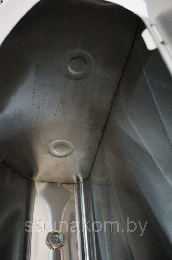 Корпус углового бака выполнен из листовой жаростойкой настоящей нержавеющей стали AISI 304 (не магнитится), с содержанием хрома 18% и температурой окалинообразования 850 °C. Сварка бака производится на профессиональном автоматическом сварочном роботе по технологии, что гарантирует прочность, надежность и качество сварных швов.