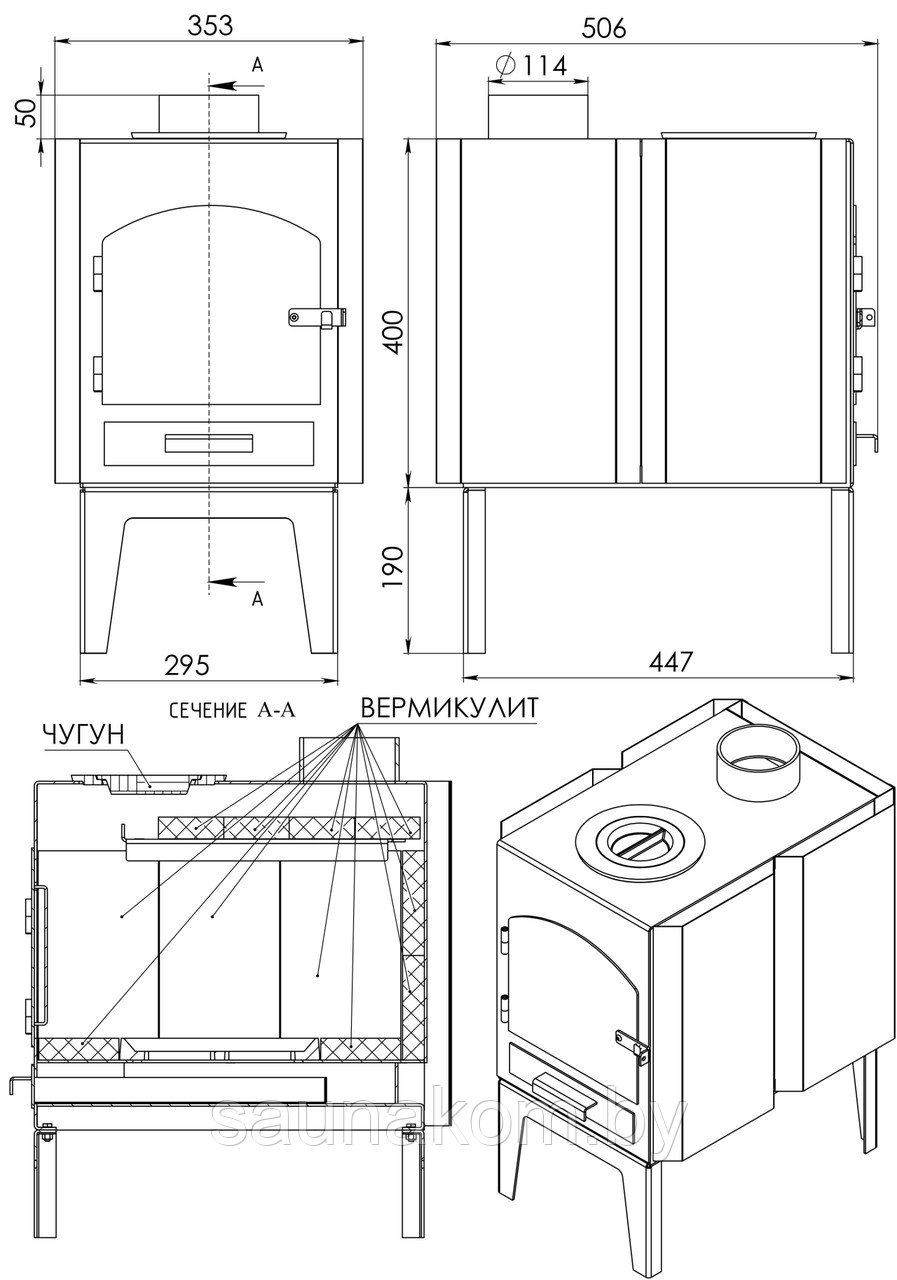 «Я мал, да удал» - данная поговорка как нельзя лучше характеризует нашу отопительную печь «ЯМАЛ». Печь имеет компактные размеры, двойной корпус и конфорку для приготовления пищи. В отличии от большинства недорогих отопительных печей – в Ямале топочная камера футерована вермикулитом и оснащена большим чугунным колосником. Под топочной камерой расположен зольный ящик, для быстрого и аккуратного удаления золы.