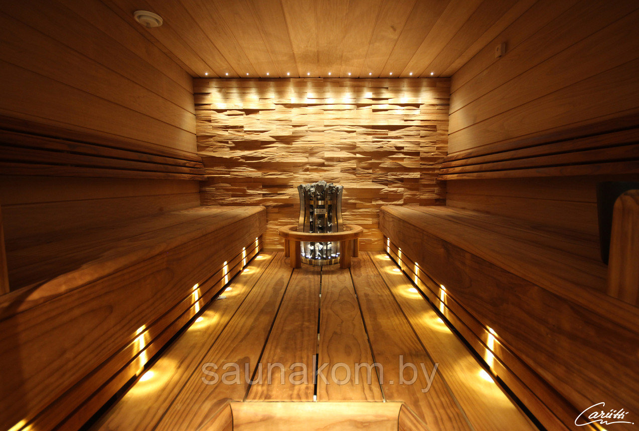 Проектор типа VPAC-1527 со степенью защиты IP65 может размещаться внутри сауны под полком. Проектор не имеет вентилятора и поэтому абсолютно бесшумный. Источник света — светодиод 16 Вт.